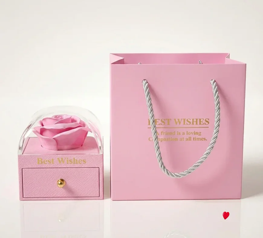 صندوق "الحب الأبدي" باللون الوردي مع عقد قلب ثمين وردي